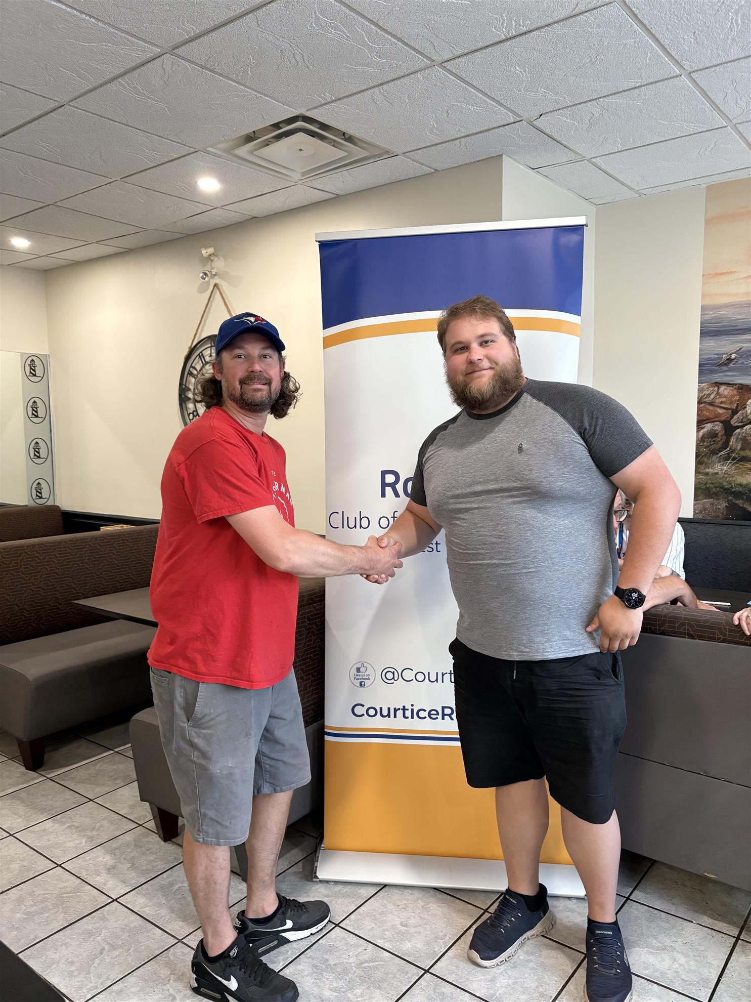 With our regular venue, The Bulldog Pub & Grill, temporarily closed for renovations, the Rotary Club of Courtice took a little fieldtrip to Fisherman Fish & Chips for tonight’s meeting. Huge thanks to Kyle and the team for welcoming us so warmly!